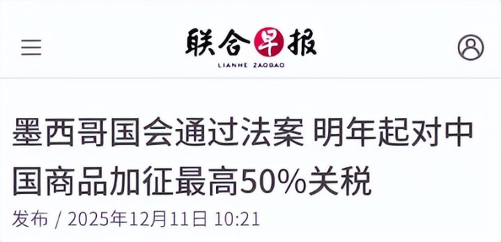 墨西哥的汽车品牌、零部件企业和农产品供应商,近年来在中国市场投入巨大,一旦关税政策触碰到双方关系,中国完全有能力通过更严格的检疫、安全或审批程序,增加其经营的合规成本和不确定性。