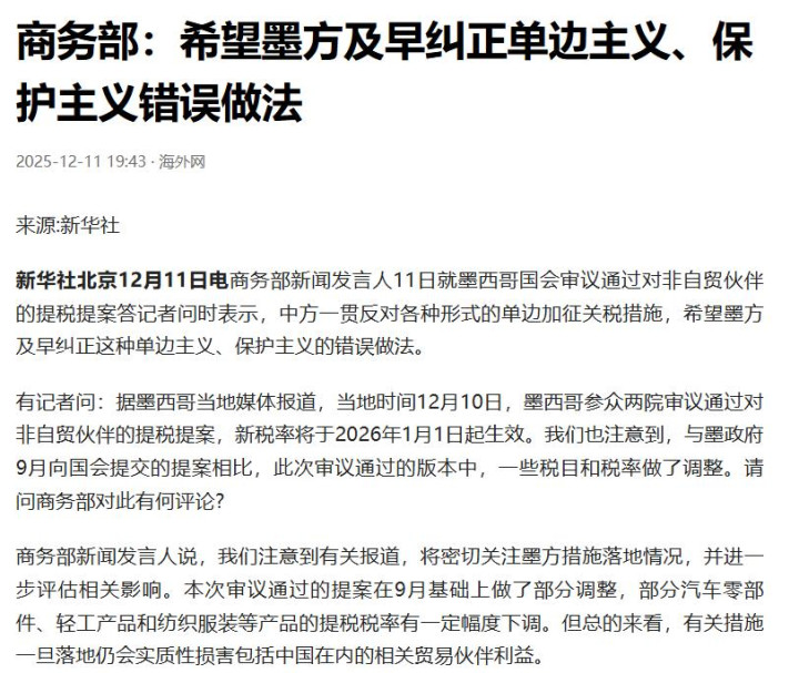 墨西哥的举动,无意中为中国提供了一个深化与这些国家合作的绝佳契机,一个共同维护多边主义和自由贸易体系的共同立场。